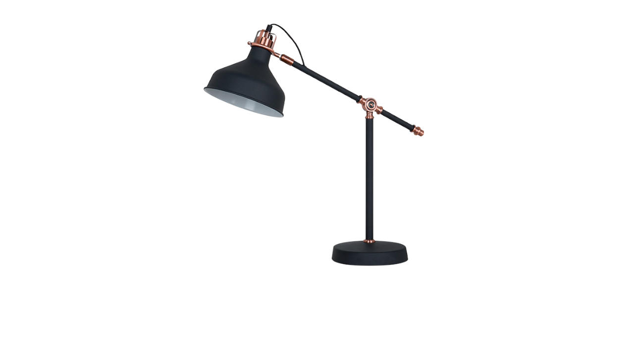 Luminária JOHN de mesa1xE27 190x495x600 preto-cobre
