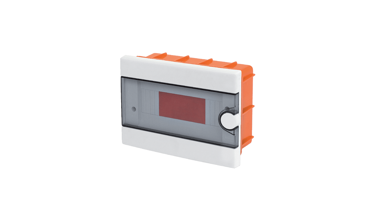 Quadros fornecidos com porta transparente com abertura de 90º. Fabricados com plástico auto-extinguível resistente a altas temperaturas. Equipados com calha DIN, barramento de neutro e barramento de terra.