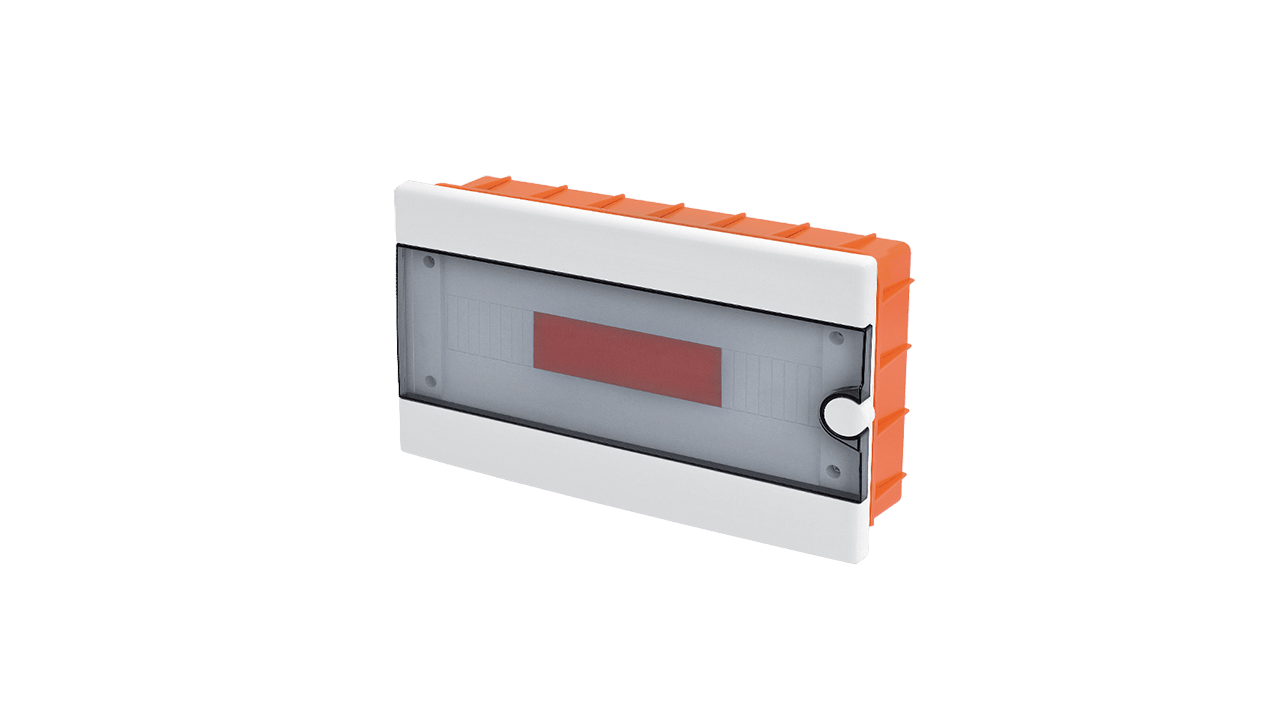 Quadros fornecidos com porta transparente com abertura de 90º. Fabricados com plástico auto-extinguível resistente a altas temperaturas. Equipados com calha DIN, barramento de neutro e barramento de terra.